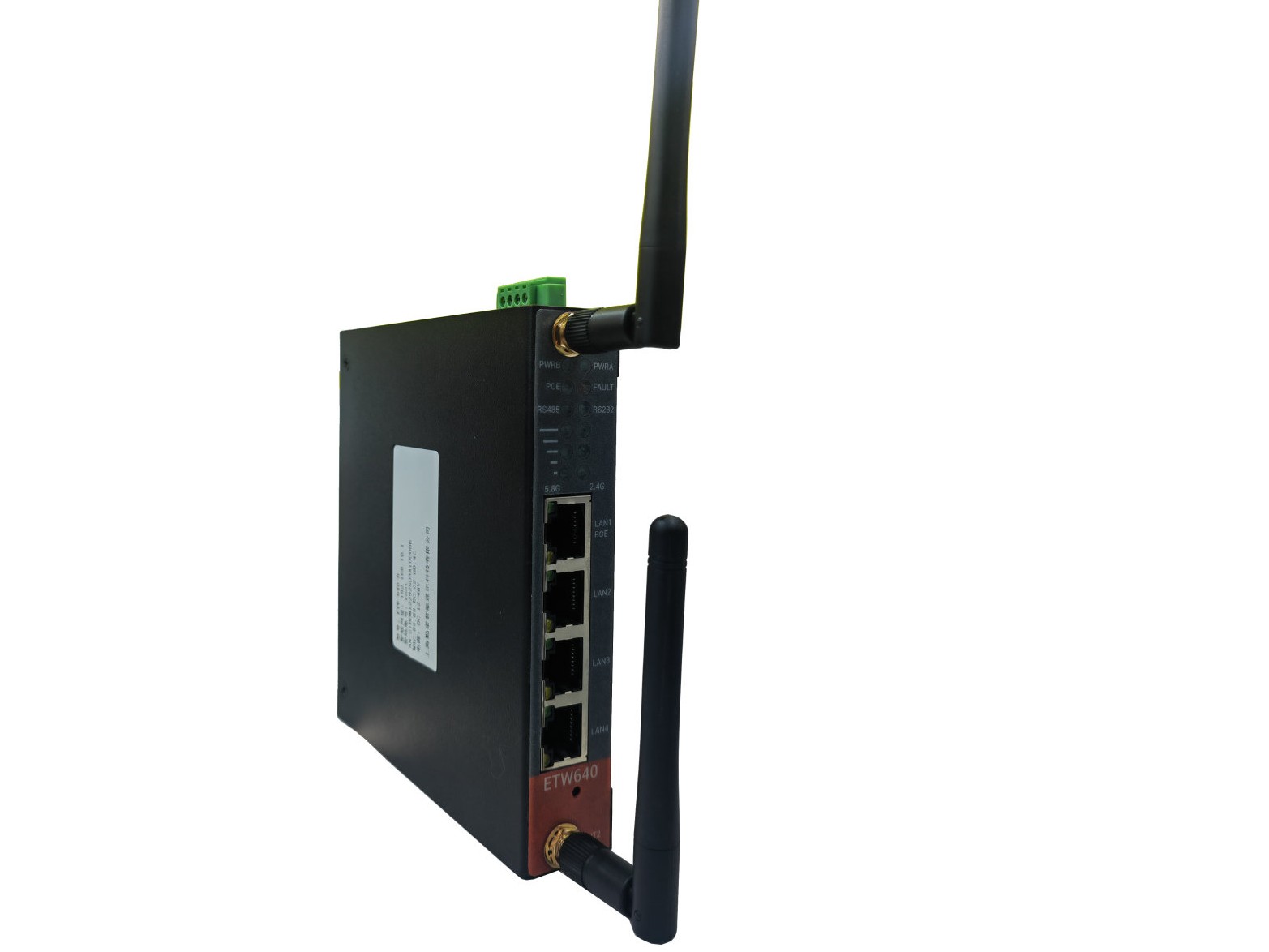 ETW640在WiFi6 基础上与芯片原厂进行深入芯片底层的驱动技术合作与开发,适应多种工业环境应用场景,提供4×GE(千兆以太网)、RS232、RS485等通信接口,满足用户接口多样性需求。