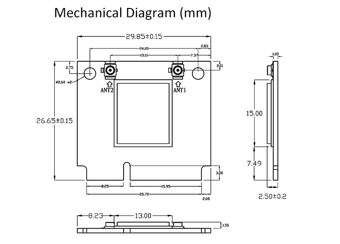 Dimension (MM) | 29.85mm(±0.15mm) x 26.65mm(±0.15mm) x 2.5mm(±0.2mm) |