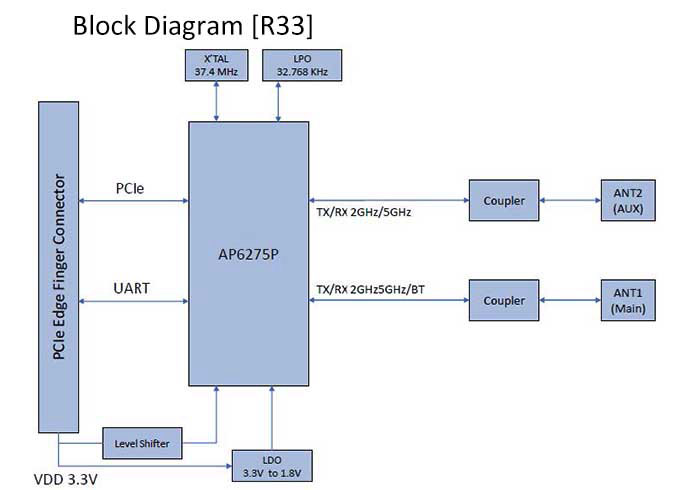 WPEB-265AXI(BT) [B33] | WLAN: PCIe, BT: USB, DC 3.3V, -40°C~85°C | |